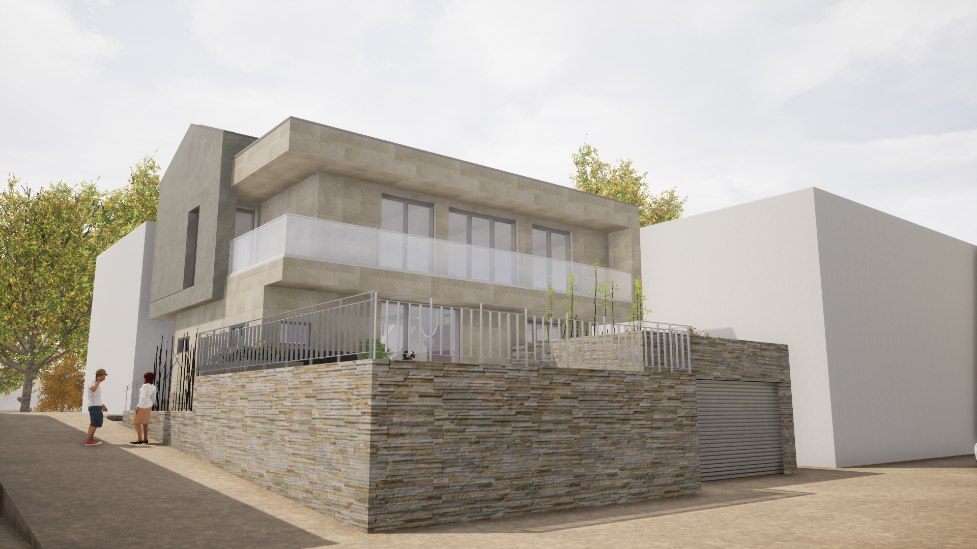 대지 북쪽의 공원으로 이어지는 보행자도로에 위치한 주현관은 사생활보호를 위해 도로와 1m의 단차를 두어 계획하였고 그에 맞춰 1층에서 펼쳐지는 마당공간은 진입도로에서 3m의 단차가 발생하여 완벽하게 프라이버시가 보장되도록 설계되었다. 또한, 건물 내부에서 바라보면 보행자도로의 커다란 가로수가 잔디마당과 함께 어울려 하나의 조경요소처럼 작용하도록 하였다.